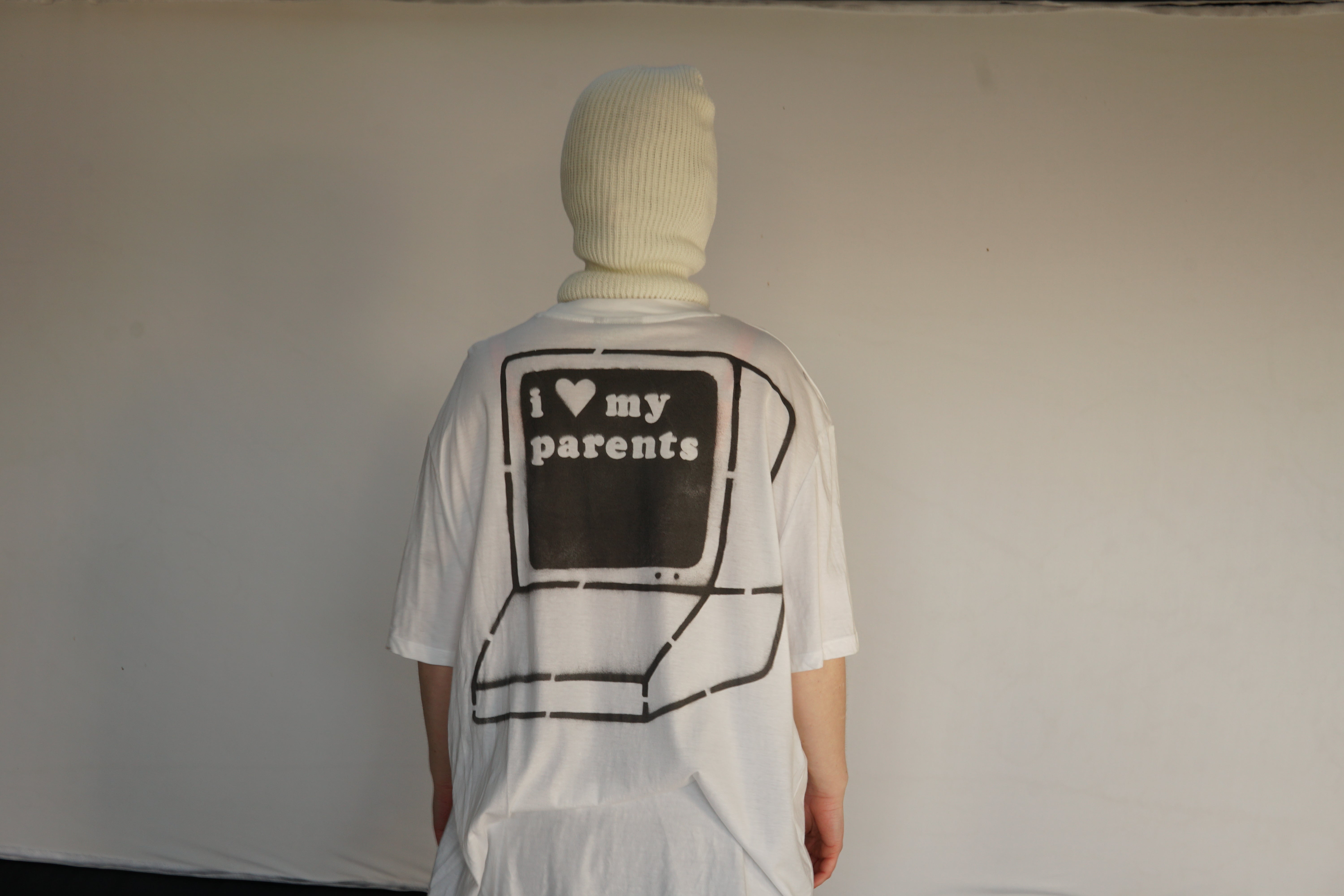 Gen 1 teeshirts are 1/1 designs. Each tee is made with fabric spray paint and a stencil cut by mew.